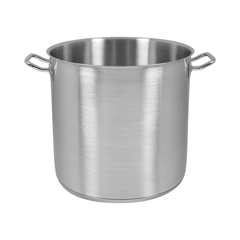 Hög kittel tillverkad i rostfritt 18/10 stål med sandwichbotten för jämn värmefördelning. Kitteln är utrustad med greppvänliga handtag och är ett tåligt och slitstarkt kokkärl som fungerar på alla typer av spisar. Perfekt för daglig användning och rengöring i professionella kök.