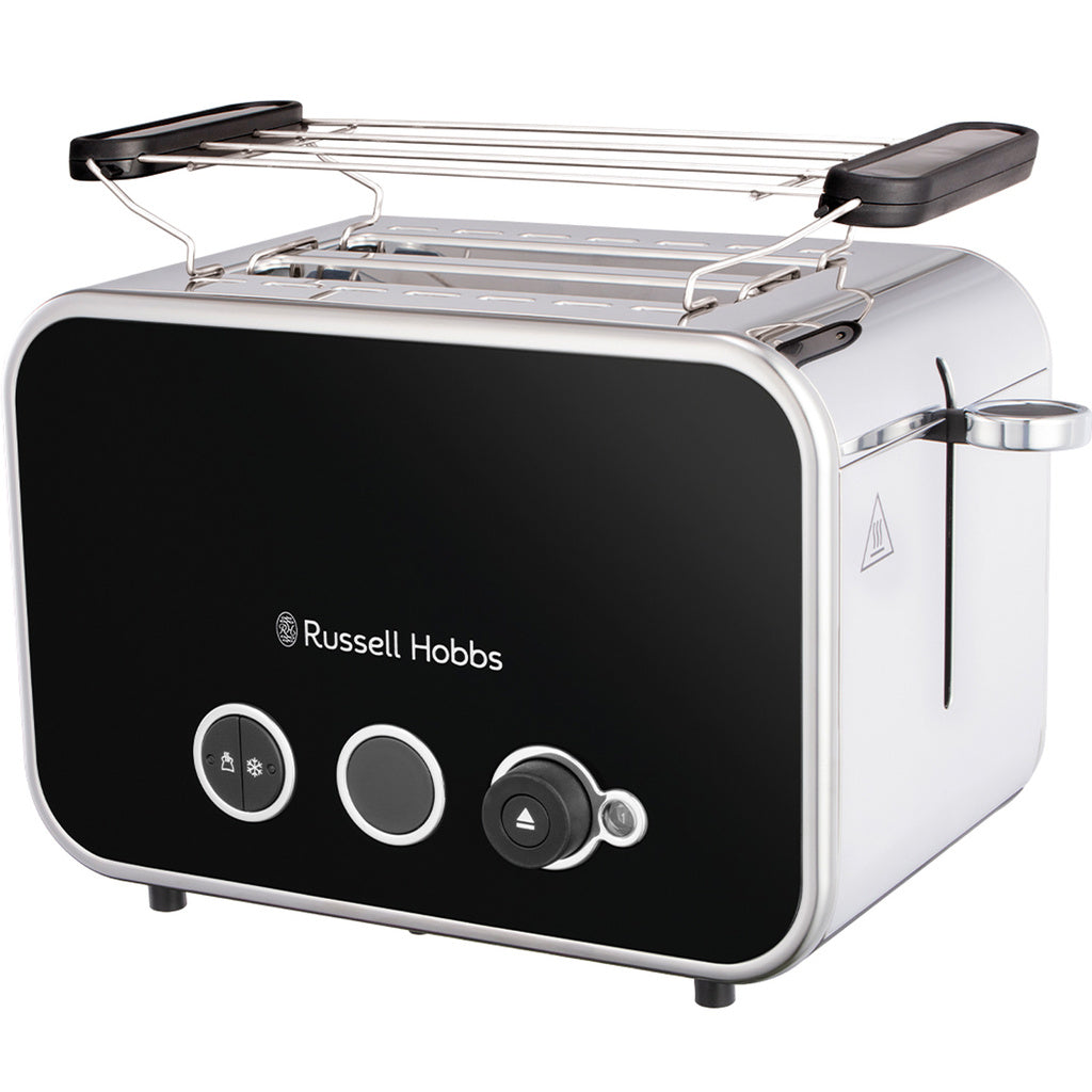 Upptiningsgallret håller brödet varmt och en LED-indikator räknar ner rostningstiden. Brödrosten har inbyggd smulbricka för enkel rengöring.