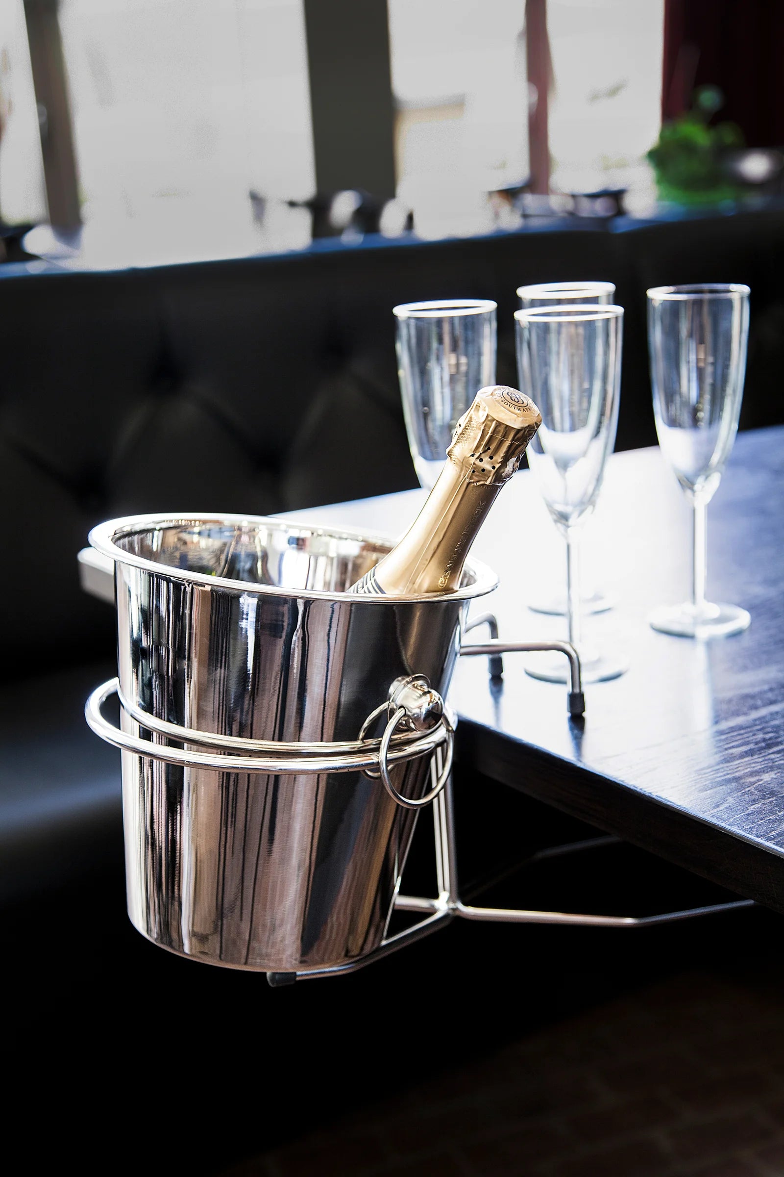 Praktisk ställning för att fästa vinkylaren stabilt på bordet. Tillverkad i rostfritt 18/8 stål som gör ställningen extremt tålig och slitstark. Med denna bordställning står vinkylaren säkert och stabilt, perfekt för daglig användning i både professionella miljöer och hemma.