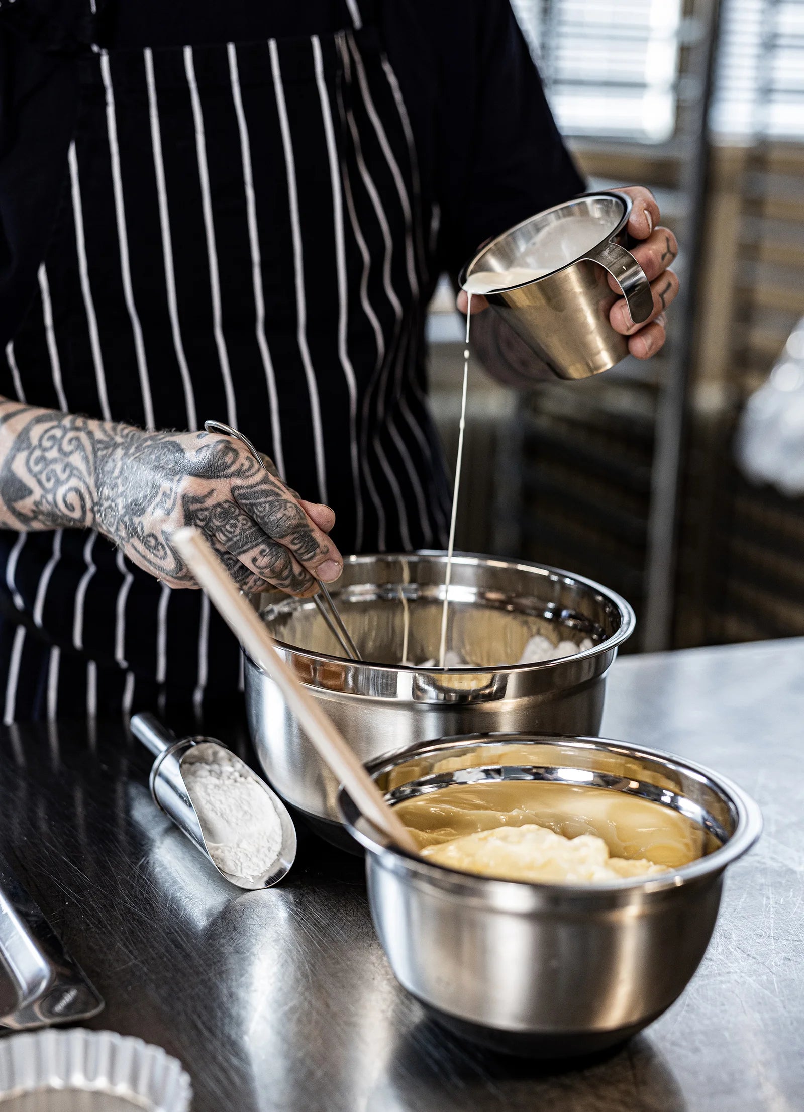 Stapelbar bunke i rostfritt 18/8-stål med silikonbelagd botten som gör att den står extra stadigt på arbetsbänken. Den tåliga och hygieniska konstruktionen är framtagen för att klara daglig användning i professionella kök. En hållbar, stabil och lättdiskad bunke som fungerar utmärkt för både bakning och matlagning.