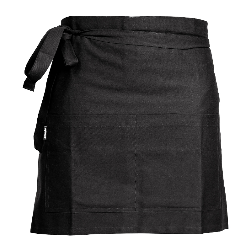 Praktiskt midjeförkläde med rymlig ficka för enkel förvaring av redskap eller recept. Tillverkat i 100 % bomull, helt fri från gifter och kemikalier och certifierat enligt STANDARD 100 by OEKO-TEX®. Midjeförklädet är tvättåligt och slitstarkt, vilket gör det perfekt för både professionella kök och hemmakocken.