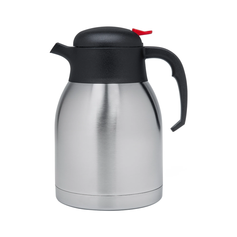 Håll kaffet eller teet varmt under lång tid med denna rostfria termoskanna, som samtidigt fungerar som en elegant detalj på bordet. Termoskannan är praktisk och stilren, utrustad med ett lock som säkerställer värmeisolering. Den är idealisk för både professionella verksamheter och hemmabruk.