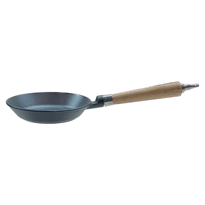 Gjutjärnsstekpanna med rund kant och exklusivt skaft av oljat ekträ. Förinstekt med svensk KRAV-märkt rapsolja, redo att användas direkt. Plansvarvad botten gör pannan kompatibel med alla typer av spisar, inklusive induktion.