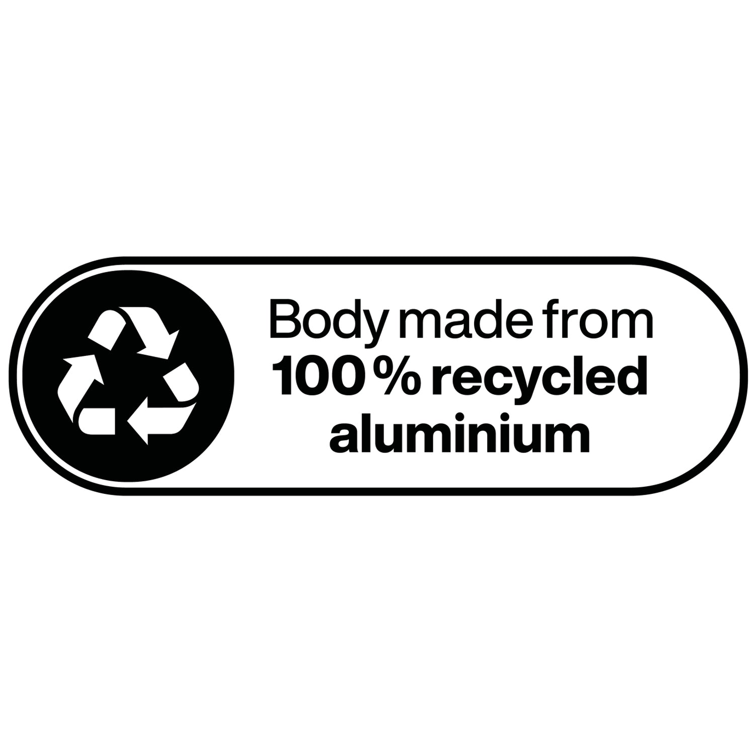 - ✅ Tillverkad av 100 % återvunnen aluminium
