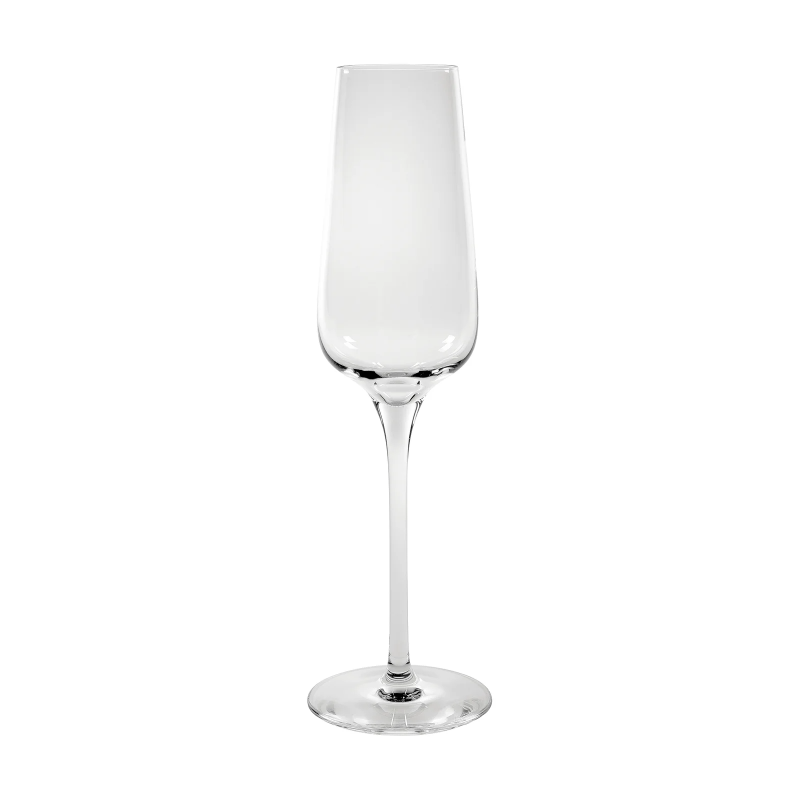 Elegant champagneglas tillverkat av förstärkt kristallglas (Krysta) som ger extra hög tålighet mot både stötar och diskmedel. Glaset är designat med en smal öppning som hjälper till att bevara bubblorna längre och framhäver aromerna på bästa sätt. Perfekt för servering av alla typer av mousserande viner.